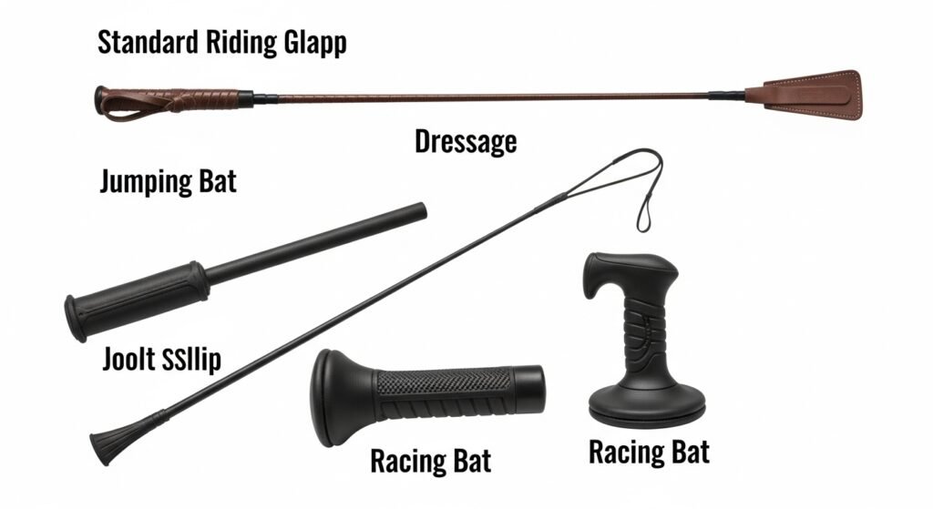 Not all riding crops are the same. Different riding disciplines use different styles.